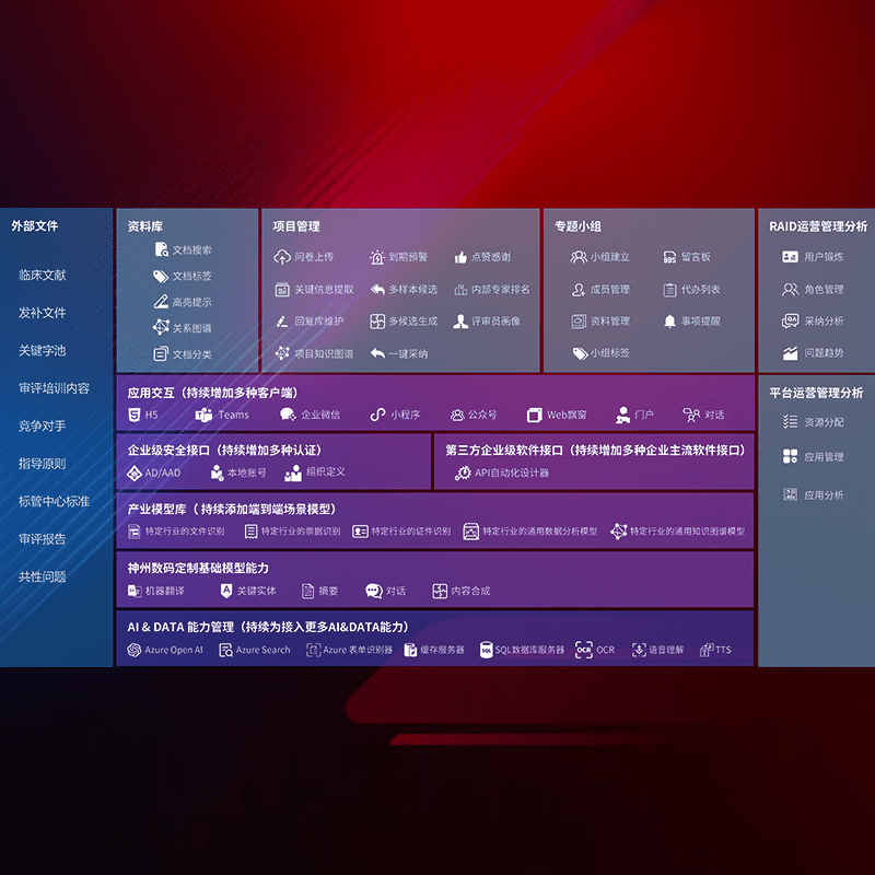 医疗器械产品上市前,,,,要熟悉严格与繁复评审标准,,,,整理分析监管机构指导文件中的海量信息。。。企业急需一个智能化解决方案,,,提升知识管理效率,,,,提高评审通过率,,,,以提升其市场竞争力。。。。